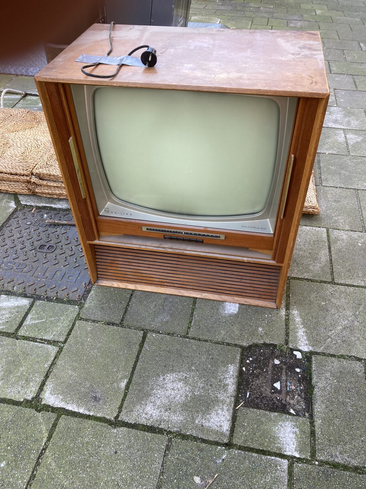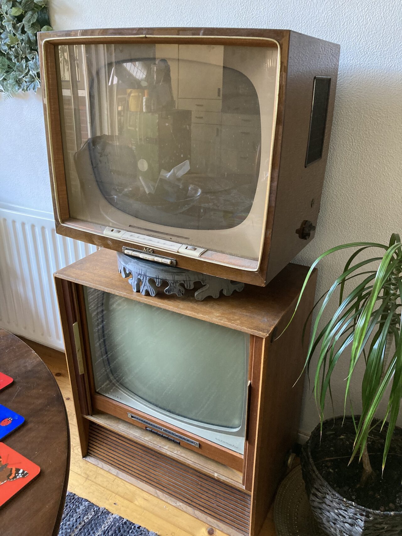 Het begon met de vondst van een zestigerjaren teevee op straat in de Pijp in Amsterdam. Gewoon bij de vuilnis. Afgedankt, onbruikbaar, zo leek het. Ik kon die niet laten staan, zo’n mooi object met een zo lange geschiedenis. Wat heeft zo’n beeldbuis laten zien, waar stond ie dan, wie hebben er naar gekeken? Hoe dan ook, een apparaat met een verleden verdient een toekomst. Het ontaardde pas echt in een creatief proces toen mijn vriend Bas uit zijn kelder me nog een teevee gaf, van zijn vader geweest, en een sta-in-de-weg. Ook een parel van een buis uit dezelfde periode. Twee teevees, wat doe je er dan mee?